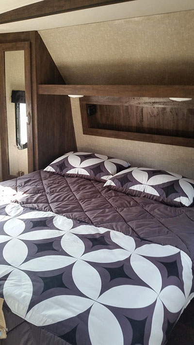 Every rental trailer comes with the beds fitted with a mattress protector, and pillows with pillow cases. If you are flying in, or just want us to take care of it, than select this option to include sheets and comforters on your rental request. If you would like bedding for the dinette and/or couch, please let us know in the comment section at the bottom of the request form for an additional $25/bed. (Subject to Availability)